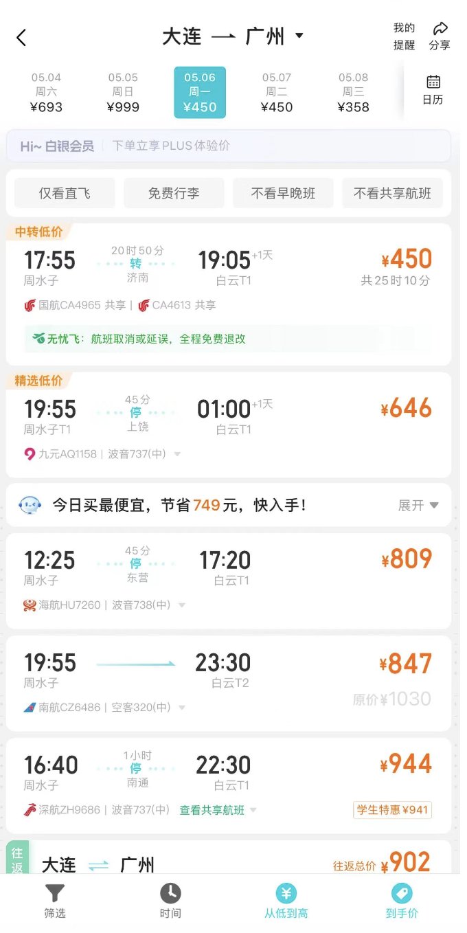 “买机票怎么比炒A股还难啊,还没开始旅游就痛失3000元,以为是早买早享受,结果是早买被割肉。”五一假期计划从广州前往大连的张璇也感到有些“肉疼”。