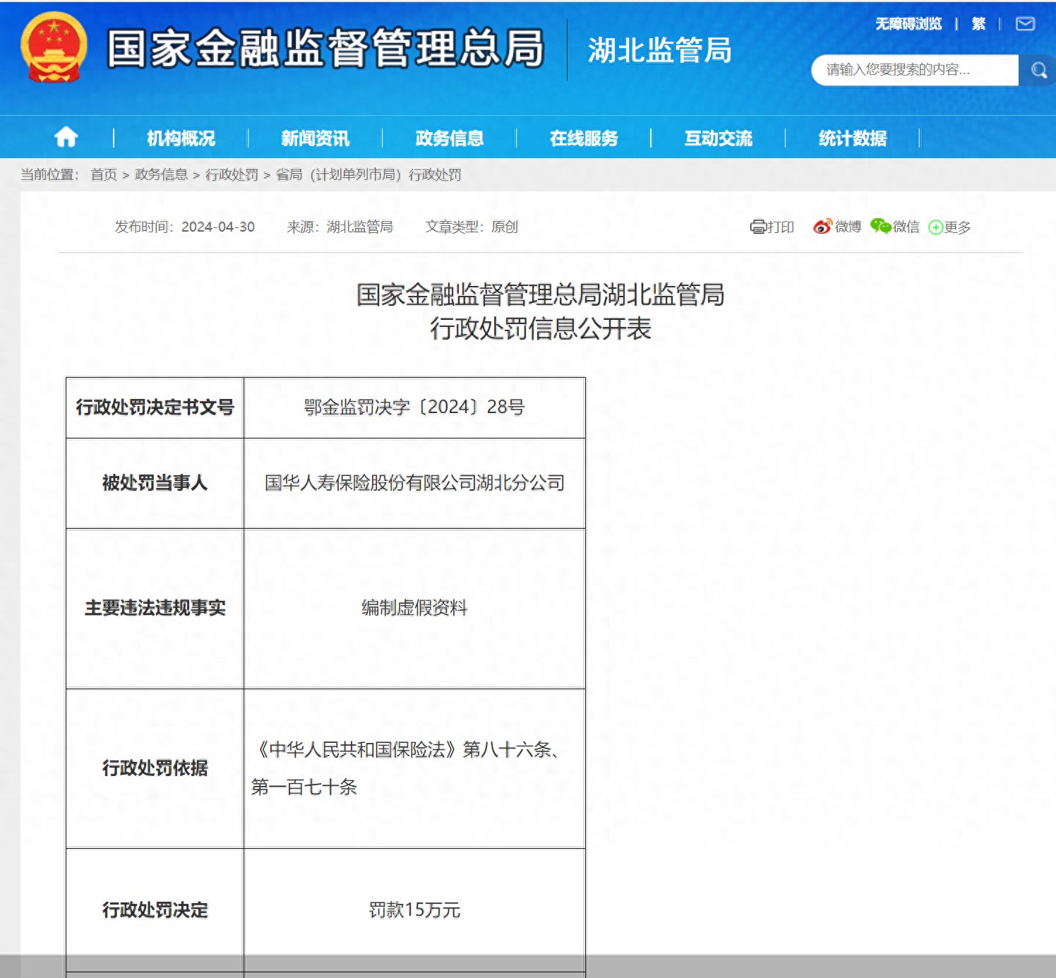 北京商报讯(记者 李秀梅)4月30日配资炒股安全,国家金融监督管理总局湖北监管局发布行政处罚信息显示,因编制虚假资料,国华人寿保险股份有限公司湖北分公司被罚款15万元。武化军、李敏分别被警告并罚款2万元、1万元。